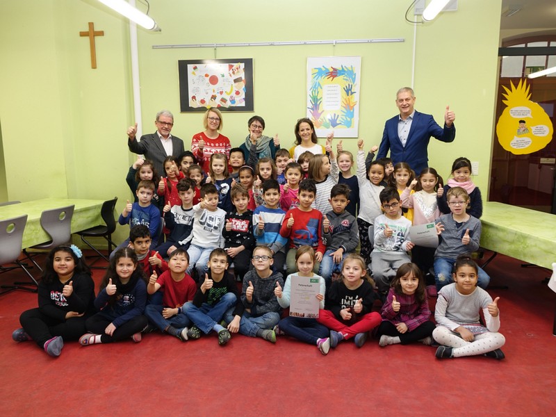Auch in diesem Schuljahr starten mit der 1a und 1c zwei weitere Klassen unserer Schule bei dem von der AOK geförderten Gesundheitsprojekt Klasse 2000. AOK-Direktor Herr Frank Dünisch überreichte am 20.01.2020 im Speisesaal zusammen mit Herrn Lothar Zachmann in Anwesenheit von Gesundheitsförderin Frau Dümpert, den Klassenleiterinnen Frau Kaiser und Frau Bankmann-Lamprecht sowie allen Kindern feierlich die Teilnahme-Urkunden und wünschte ihnen viel Spaß und Erfolg für das 4-jährige Projekt. Schulleiter G. Leo Redolfi bedankte sich und betonte, wie wichtig es ist, Gesundheitsförderung aktiv und nachhaltig in den Schulalltag aller jahrgangsstufen zu integrieren.