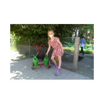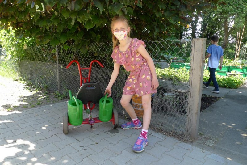 Kinder der Notgruppe gießen den Schulgarten 2020