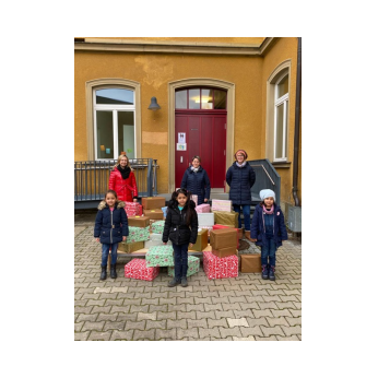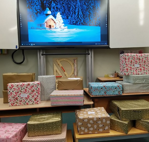 Als gemeinsame Abschlussaktion wurden Weihnachtspäckchen für die Rumänienhilfe Karl gepackt. Die Kinder brachten hierzu Lebensmittel und Schreibwaren in überwältigender Menge mit, so dass weit über 40 Päckchen für bedürftige Kinder und Familien in Rumänien zusammenkamen.