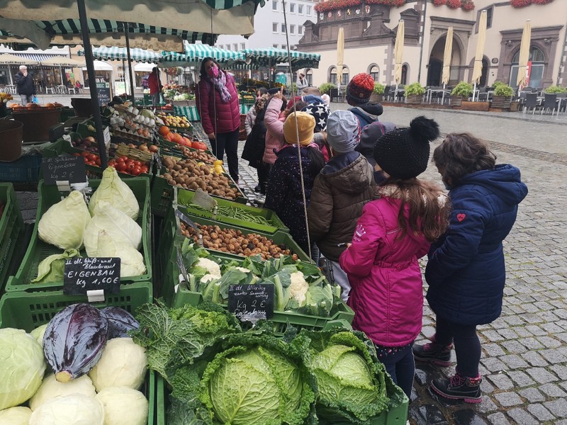 In Heimat- und Sachunterricht beschäftigen sich die Zweitklässler zur Zeit mit dem Themenbereich "Obst und Gemüse". Bei ihrem Besuch auf dem Schweinfurter Wochenmarkt konnten die Kinder bestaunen, was auf den Feldern um Schweinfurt an Obst und Gemüse wächst.
