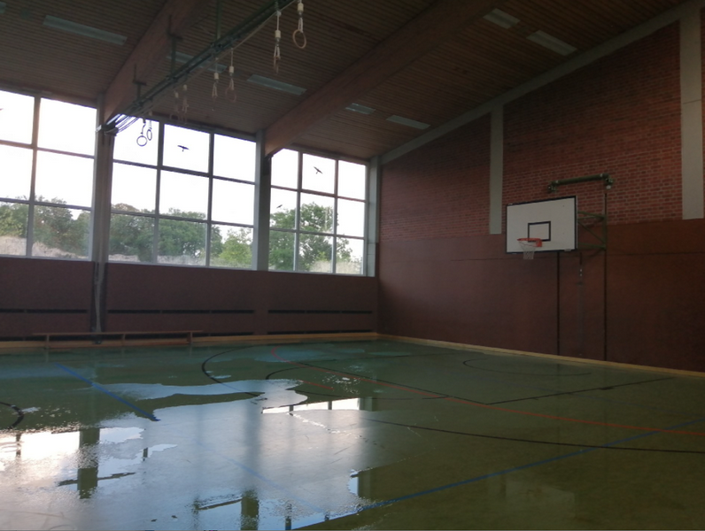 Schweinfurt zog, wurde der größte Teil des Turnhallendaches abgedeckt und kam