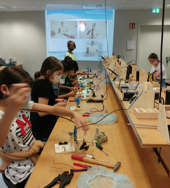 die Kinder ganz praktisch ausprobieren, wie der Strom durch die selbstverkabelten