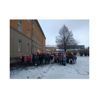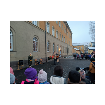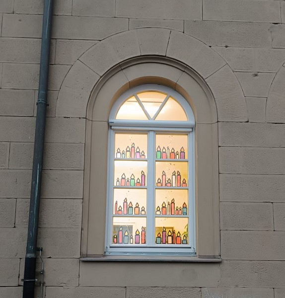 Immer montags traf sich die Schulfamilie im Hof, um sich gemeinsam mit Liedern und Geschichten auf die Adventszeit einzustimmen. Passend dazu wurde von den Schulkindern für jeden Adventssonntag ein Fenster im Erdgeschoss gestaltet.