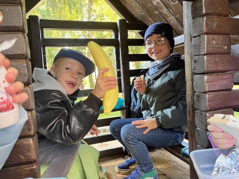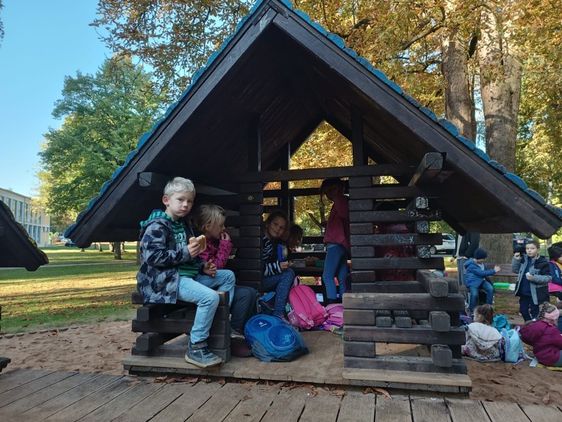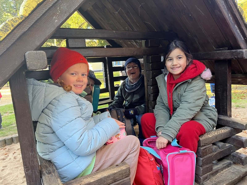 Gemeinsam zogen alle ersten Klassen bei strahlendem Sonnenschein los zum ersten gemeinsamen Wandertag. Am Main entlang ging es über die Maxbrücke zum Spielplatz in den Wehranlagen. Beim gemeinsamen Spielen und Picknicken lernten sich die Kinder näher kennen. Bevor es wieder zurück zur Schule ging, beobachteten wir noch gemeinsam die Enten ihm Teich und entdeckten ein Eichhörnchen im Wald.