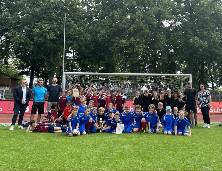Unter großem Jubel konnten die Kinder im Anschluss den Pokal für Platz drei von der dritten Bürgermeistern Ayfer Rethschulte und Schulrat Frank Hagen entgegennehmen. Ein großer Dank an Frau Kühl-Dürr für die Unterstützung und Begleitung unseres Fußball-Teams und natürlich allen Mädchen und Jungen Gratulation zu diesem tollen Team-Erfolg.