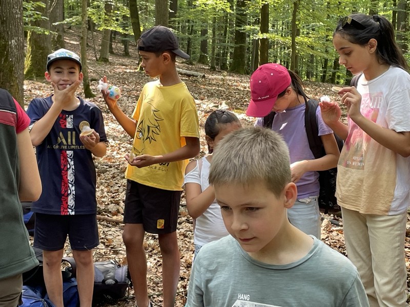 herzlich. Sie leitete uns an, in drei verschiedenen Gruppen den Wald rund um