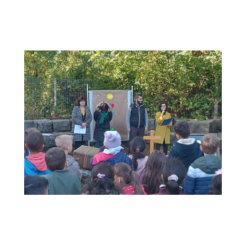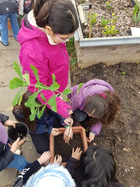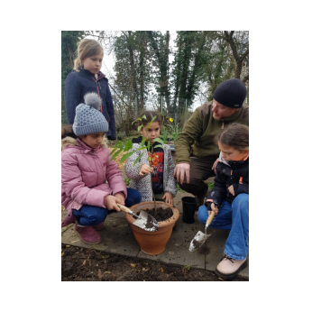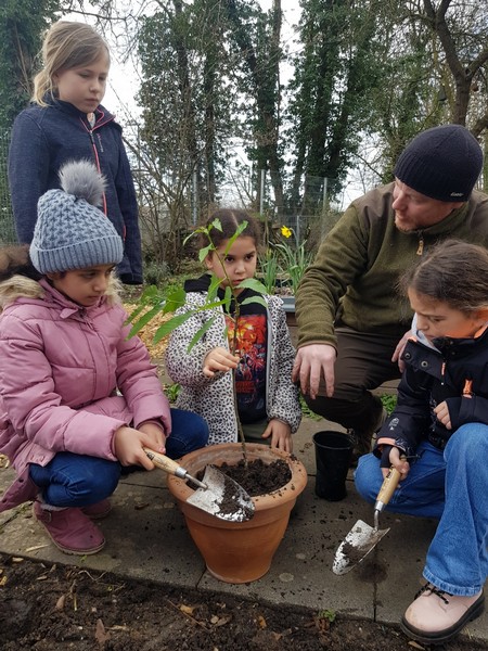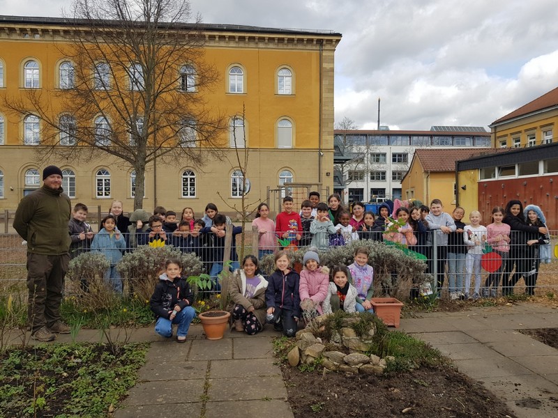 Im Rahmen der Projektwoche zu Gesundheit und Nachhaltigkeit sammelten die Kinder der Klassen 3a und 3b im Herbst 2022 gemeinsam mit Herr Haensel, dem Leiter des Schweinfurter Forstamtes, insgesamt 60 Kilogramm Eicheln. Für diese tolle Leistung wurden sie letzten Mittwoch belohnt: Mit zwei Jungbäumen im Gepäck besuchte uns Herr Haensel in unserem Schulgarten. Diese beiden Bäume, eine Eiche und eine Esskastanie, wurden von den damaligen Gewinnerteams in Empfang genommen und umgetopft. In ihren neuen Töpfen werden sie nun noch einige Wochen in den Klassenzimmern der 3a und 3b gepflegt, bevor sie dann endlich in unserem Schulgarten eingepflanzt werden und zu großen schattenspendenden Bäumen heranwachsen können. Vielen Dank, lieber Herr Haensel!