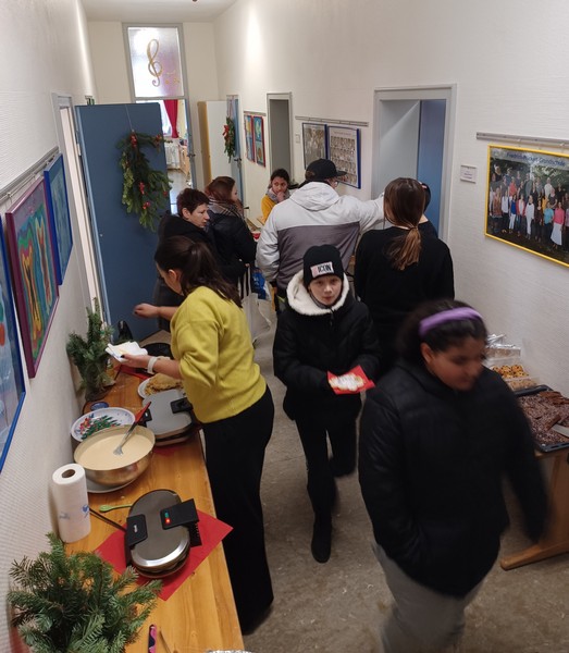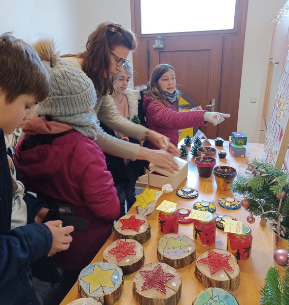 Im ganzen Schulhaus duftete es nach Waffeln und Punsch. Weihnachtliche Musik schallte durch die Gänge und Kinder mit glänzenden Augen bestaunten den liebevoll gebastelten Weihnachtsschmuck – auf dem bisher einmaligen Weihnachtsmarkt im Erdgeschoss unserer Schule kurz vor den Weihnachtsferien.