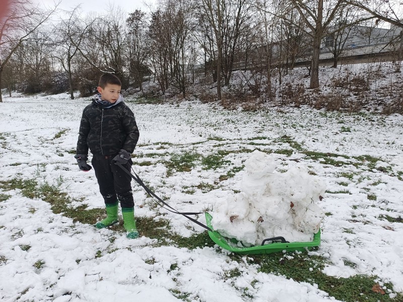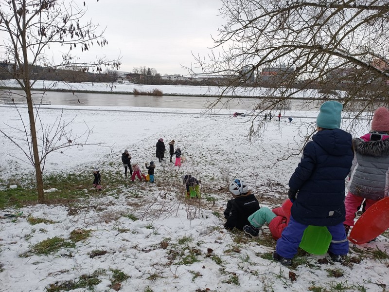 Die beiden Ganztagsklassen 2c und 1c machten sich am nächsten Tag mit Schlitten, Rennbobs und Poporutscher auf, um den Nachmittag beim Schlittenfahren und Schneespielen zu genießen.