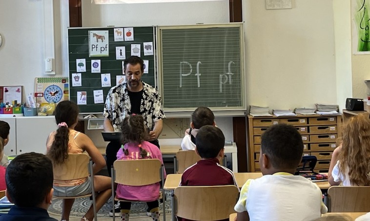 Der Fernsehmoderator Alexander Mazza kam an die Friedrich-Rückert-Grundschule. Im Gepäck hatte er für jede Klasse fünf wunderschöne Bücher, gesponsert vom Kinderbuchverlag Jupitermond in Würzburg.