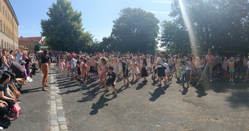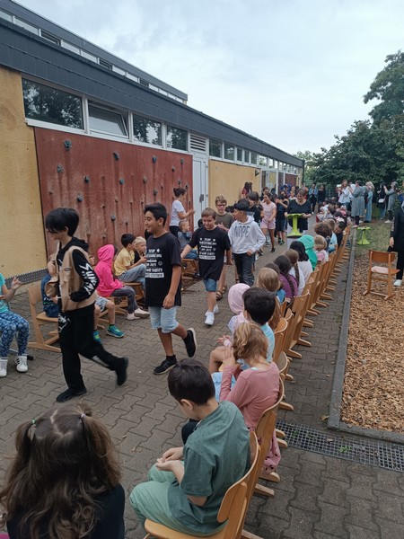 Plötzlich kamen sie aus allen Ecken - mit einem Flashmob, an dem alle Kinder der Friedrich Rückertschule beteiligt waren, überraschten und begrüßten die Kinder der FRSs Eltern und Freunde der Friedrich-Rückertstschule. Nach kurzen Grußworten von Rektorin Sabrina Neckov und 2. Bürgermeisterin Sorya Lippert bot sich den Kindern an zahlreichen Spiel- und Spaßstationen ein abwechslungsreiches Programm, von Kinderschminken über Dosenwerfen bis zum Herstellen von Seet-Bobs war alles dabei! Für reichlich köstliches Essen und Trinken sorgte der Elternbeirat unterstützt durch die zahllosen und internationalen Salat- und Kuchenspenden der Eltern.