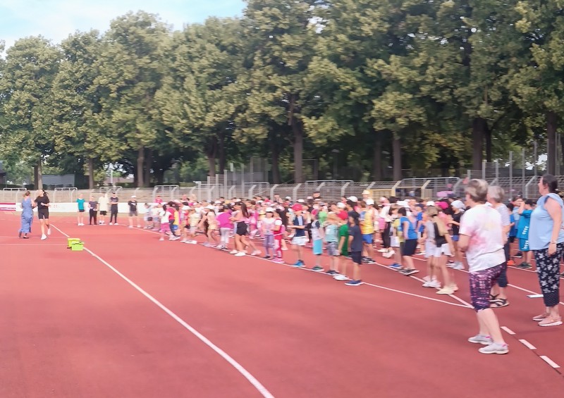 NAch dem gemeinsamen Aufwärem mit dem Aufwärmhit "Theo, Theo!" ging es los! Bei sommerlichen Temperaturen hatten die Schülerinnen und Schüler viel Spaß an den unterschiedlichen Stationen: Laufen, Weitsprung und Wurf mit den gefiederten Bällen. Dazwischen blieb aber auch genügend Zeit für ein kleines Picknick oder gemeinsames Spielen im Schatten der Bäume. Möglich wurde dies nur durch den unernüdlichen Einsatz unserer fleißigen Eltern-Helfer! Vielen Dank dafür!