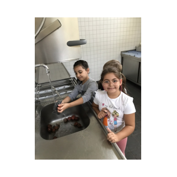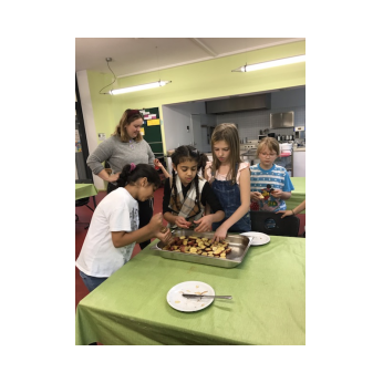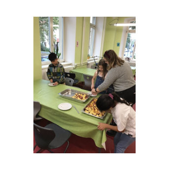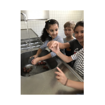 Bereits am Morgen waren die Kinder der 1c und 3c sehr gespannt. Nachdem sie in den Tagen zuvor die Kartoffeln aus unserem Schulgarten geerntet hatten, sollte die große Country-Potatoes-Aktion mit unserem Hausmeister Herrn Wüst starten. Nach einer kurzen Einführung von ihm wurden in Gruppen die Kartoffeln gewaschen, geschnitten und mit Herrn Wüsts Geheimzutaten gewürzt. Anschließend kamen die Country-Potatoes in den Ofen.