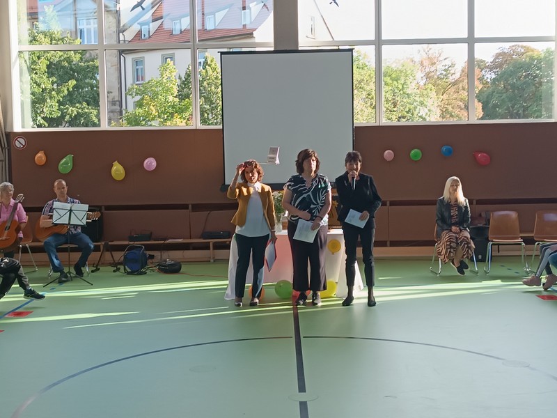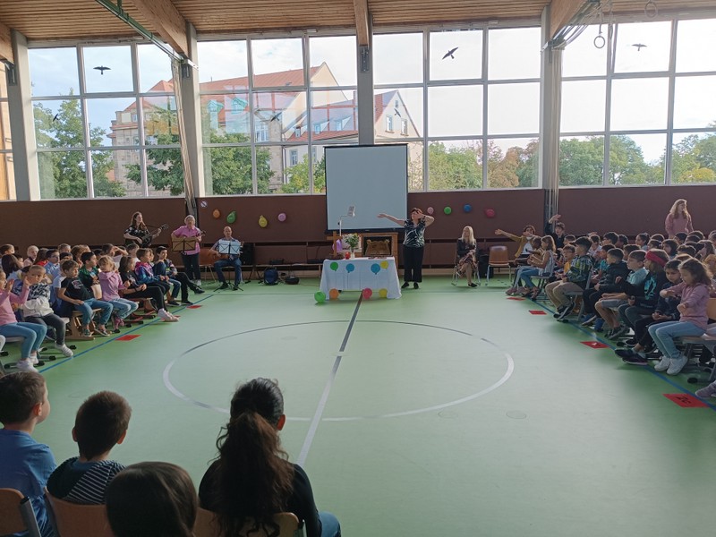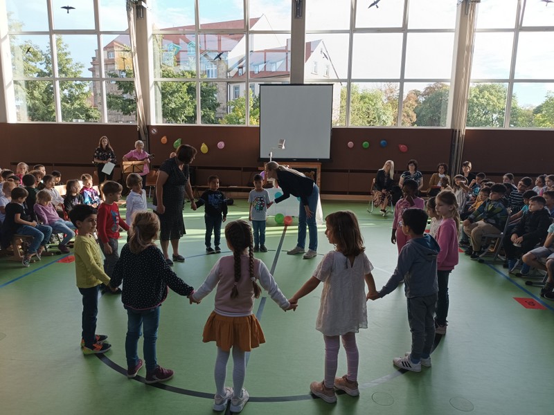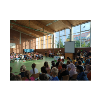 In diesem Jahr begrüßte Rektorinr Sabrina Neckov die neuen Erstklässler wieder bei strahlendem Sonnenschein unter freiem Himmel im Pausehof. Die Klasse 2a und 2b sangen für die frischgebackenen Erstkläßler den Klassiker "Alle Kinder lernen lesen". Anschließend gingen die Schulanfänger mit ihren Lehrerinnen für ihre erste Unterrichtsstunde in ihre Klassenimmer, während Frau Neckov die Eltern mit wichtigen Informationen und der Elternbeirat mit Kaffee und Kuchen versorgte. Den fleißigen Helfern ein herzliches Dankeschön!