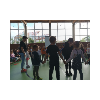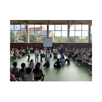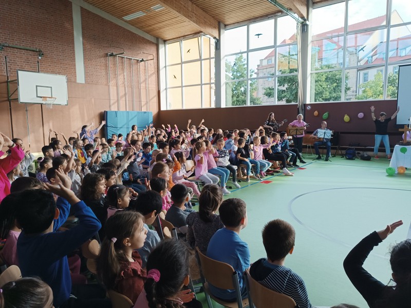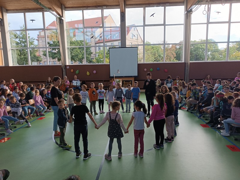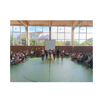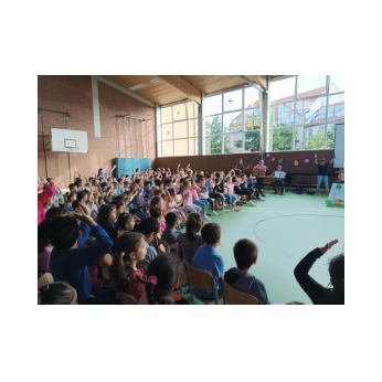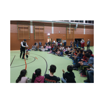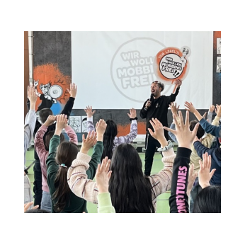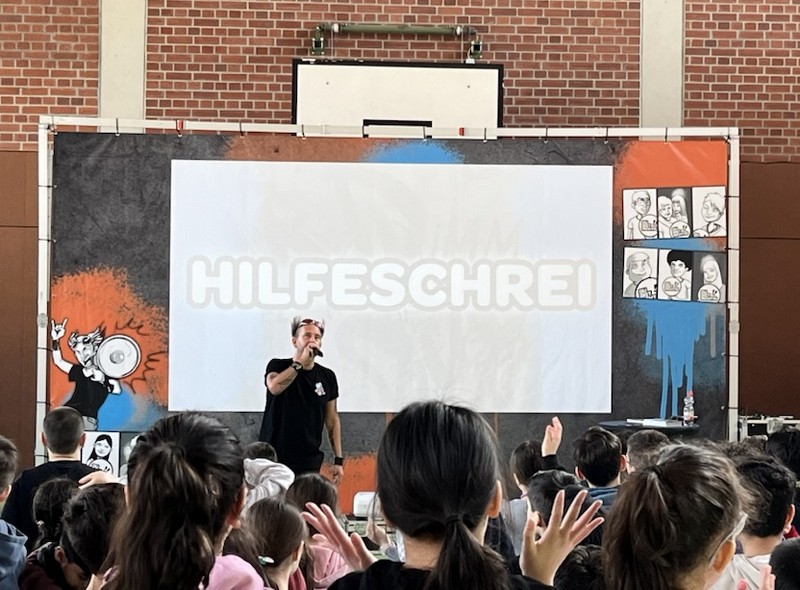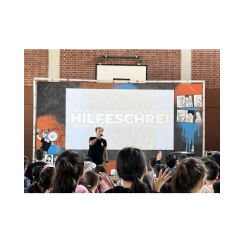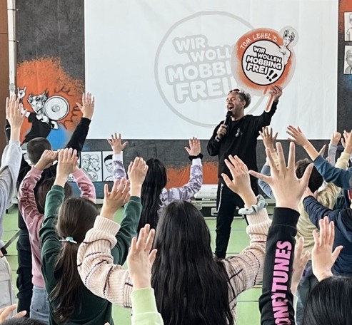 KIKA-Star Tom Lehel macht sich seit Jahren stark für eine Gesellschaft, die kein Mobbing akzeptiert. So klärte er den Dritt- und Viertklässlern über die Folgen von Mobbin und Cybermobbing auf und gab ihnen Werkzeuge zur Stärkung gegen Mobbing an die Hand. Tom Lehel möchte mit seinem Anti-Mobbing-Präventionsprogramm Mut machen. Mut, immer hin- und niemals wegzuschauen, zusammenzuhalten und sich gegenseitig mit Respekt zu begegnen. Denn Respekt und Verständnis sind der Klebstoff der Schulfamilie. "Verständnis füreinander aufzubringen ist das Wichtigste, wenn 40 Nationen zusammen an einer Schule lernen", fasst Schulleiterin Sabrina Neckov zusammen. "Wir feiern Feste zusammen, Feste wie Weihnachten, aber auch Iftar heute Abend."