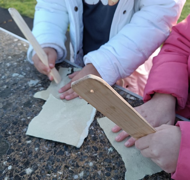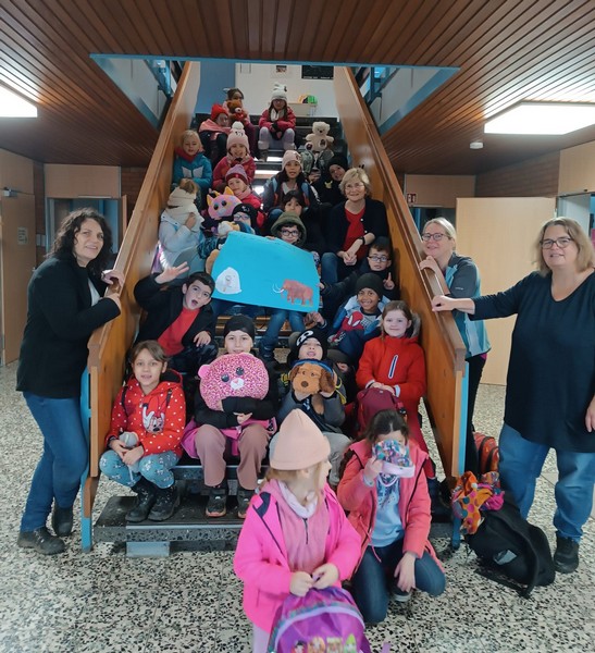 Kofferberge im Speisesaal, aufgeregte Kinder und Eltern – die Ganztagsklasse 2c wagte einen Ausflug in die Steinzeit. Im Schullandheim Reichmannshausen ließen sich die Kinder eine Woche lang vom Steinzeitfloh in die Welt des Steinzeitmannes Heyo entführen. Mit Hilfe von Karteikarten vertieften sie ihr Wissen und erstellten ihr eigenes Steinzeitbuch. Doch auch die Praxis kam nicht zu kurz! So durfte jeder ausprobieren, wie anstrengend es ist, Getreide von Hand zu mahlen. Aus Ton schufen die kleinen Künstler schön verzierte Schüsselchen und bastelten sich ein funktionstüchtiges „Steinzeit-Handy“. Entspannung boten die von Frau Kühl-Dürr angebotenen Fantasiereisen passend zur Heyo-Geschichte und der Woll-Workshop mit Frau Scheuernstuhl. Gut ausgerüstet ging es schließlich auf große Mammutjagd. Heyos Hinweise führten uns zuerst zu einem echten Wildschwein-Schädel und dann zum Ziel – das Mammut wurde besiegt. Mit (fast echten) „Mammut“-Würstchen feierten wir die erfolgreiche Jagd am Lagerfeuer. Bei der Verpflegung ging’s deutlich moderner zu. Birgit und ihr Team versorgten uns mit köstlichem Essen und allem, was wir sonst noch benötigten. Dafür ein herzliches Dankeschön!