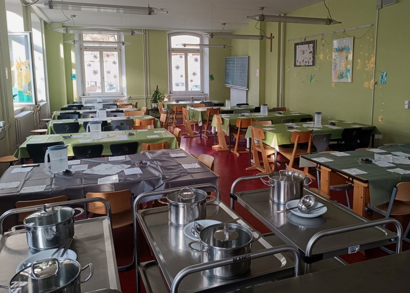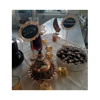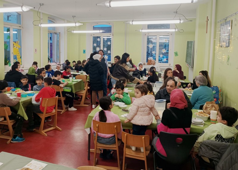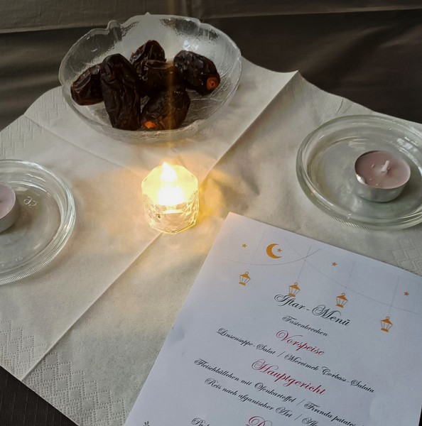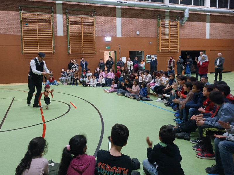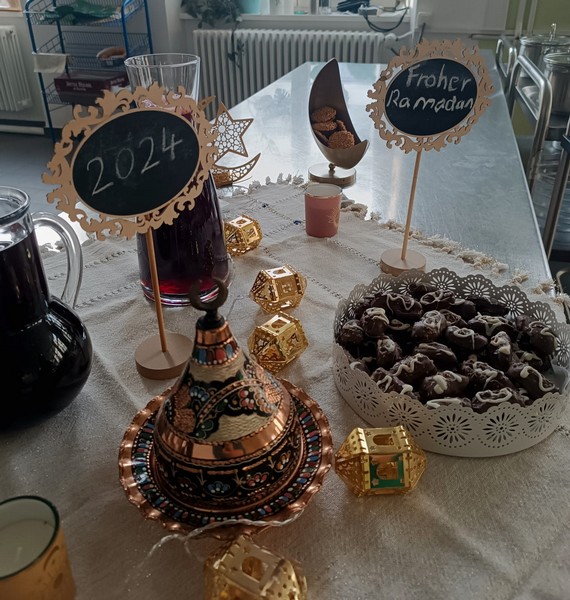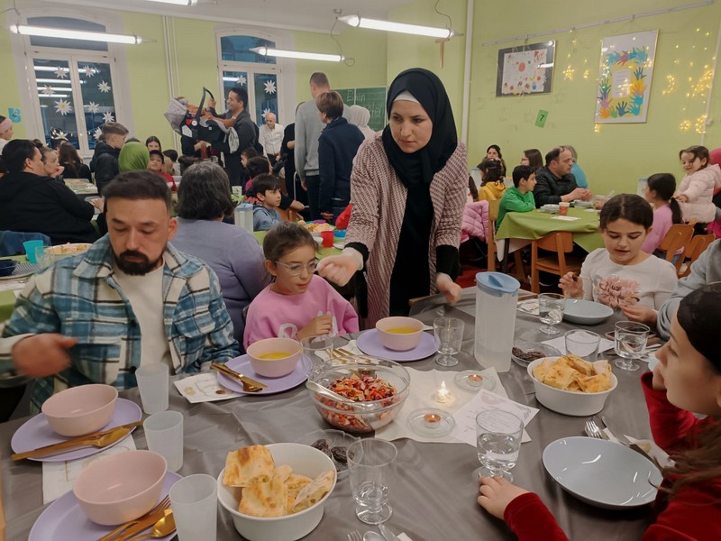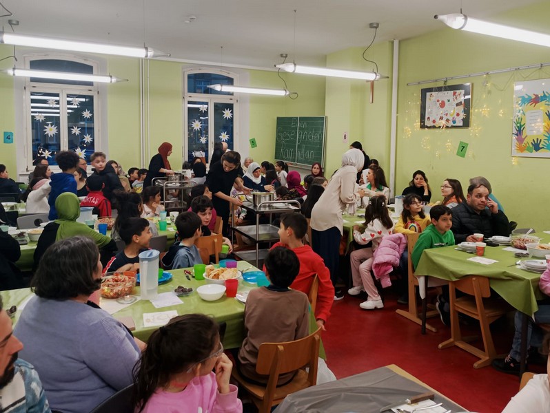Bereits zum zweiten Mal trafen sich Kinder aus den 3. und 4. Klassen zusammen mit ihren ELtern und Geschwistern sowie zahlreichen Lehrkräften im festlich geschmückten Speisesaal zum Iftar. Konrektorin Tanja Kärpf begrüßte die Anwesenden und dankte Frau Cetinkaya und dem engagierten Elternteam für die Organisation und Vorbereitung dieses Festes. Die Zeit bis zum Fastenbrechen verkürzten ein kurzes Anspiel, bei dem Lehrkräfte Fragen zu Ramadan und Iftar stellten, die ihnen von Schülerinnen und Schülern sogleich anschaulich erklärt wurde. Pünktlich zum Sonnenuntergang wurde das Fasten gebrochen – traditionell mit dem Verspeisen einer Dattel. Gemeinsam genoss die Schulfamilie das reichliche Festmahl bevor der schöne Abend mit einer beeindruckenden Marionettenaufführung als Überraschung für die Kinder ausklang.