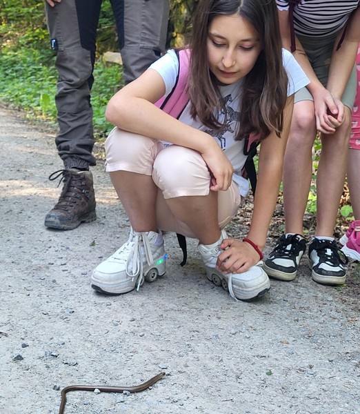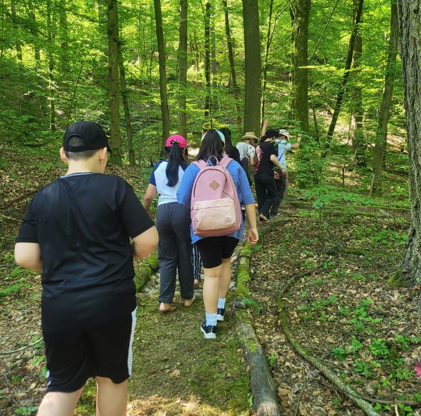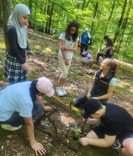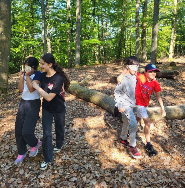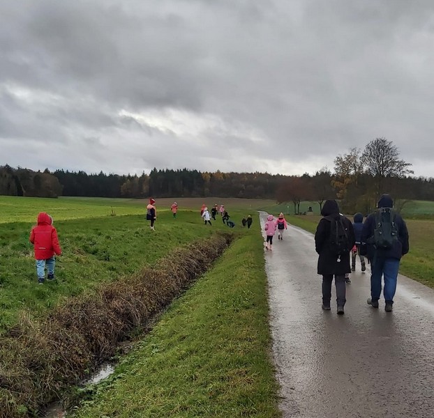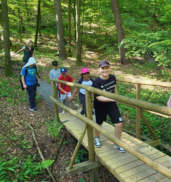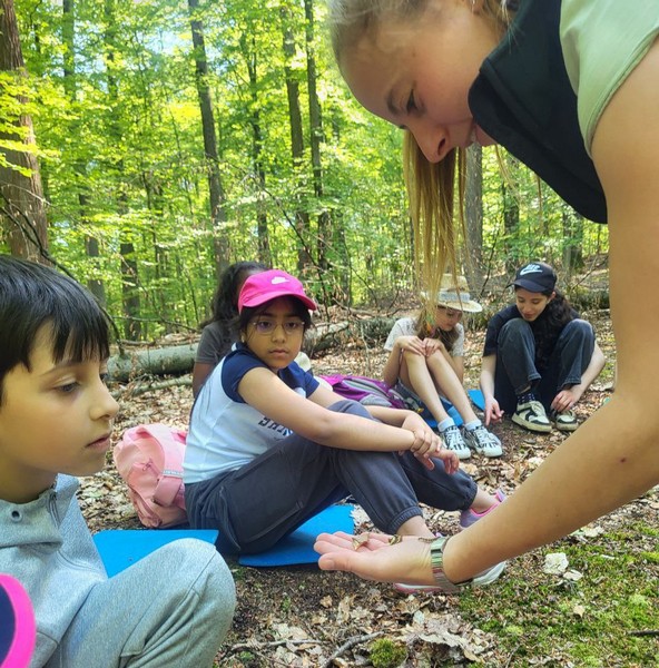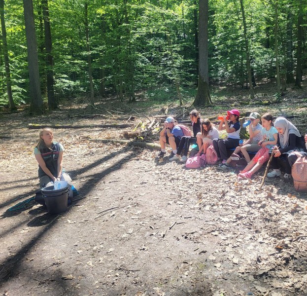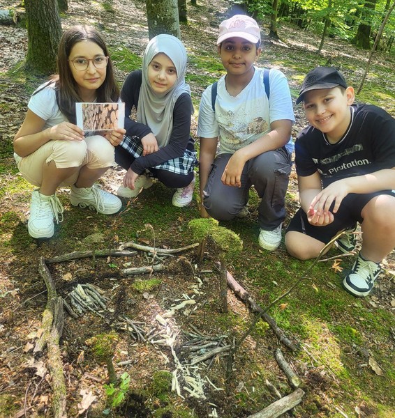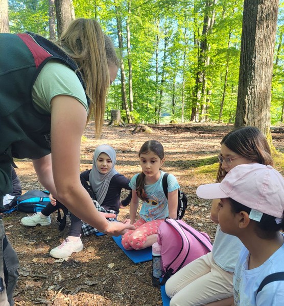 Mit dem Bus fuhren die beiden Ganztagsklasen 4b und 2c ins Handthal. Nach einem kleinen Fußmarsch wurden wir von den beiden Försterinnen Sara und Tanja schon am Walderlebniszentrum herzlich begrüßt. Danach trennten sich die Wege der beiden Klassen. Die Klasse 4b beschäftigte sich mit den verschiedenen Funktionen des Waldes. In Gruppen bauten die Kinder mit Naturmaterialien verschiedenen Waldformen nach. Wie sieht wohl der "Wunschwald" eines Naturschützers aus? Wie der eines Sägewerkbesitzers? Die Kinder der 2c wurden von Sara mit einem wunderschönen Lied über Insekten auf das Projekt eingestimmt, bevor es dann hinaus in die Natur ging. Dort lernten wir viel über Insekten und suchten mit Becherlupen im Wald und auf der Wiese nach den kleinen Krabbeltierchen. Unser Weg führte uns über einen matschigen Pfad, durch eine tiefe Schlucht den steilen Berg hinauf bis zum Barfußpfad. Am Ende bekam jedes Kind eine von Sara selbst gezeichnete Karte mit einem Insekt geschenkt. Zum Abschluss blieb noch ein wenig Zeit, den Spielplatz am Walderlebniszentrum zu erkunden, bevor uns der Bus wieder zurück nach Schweinfurt brachte.