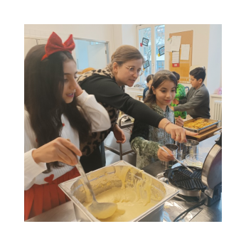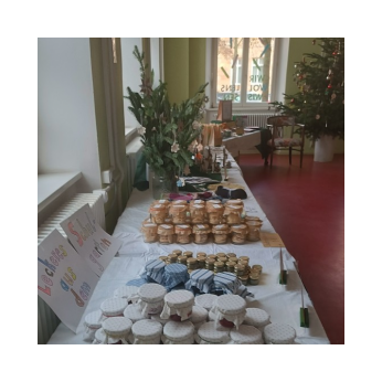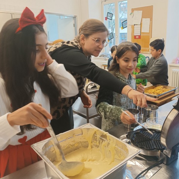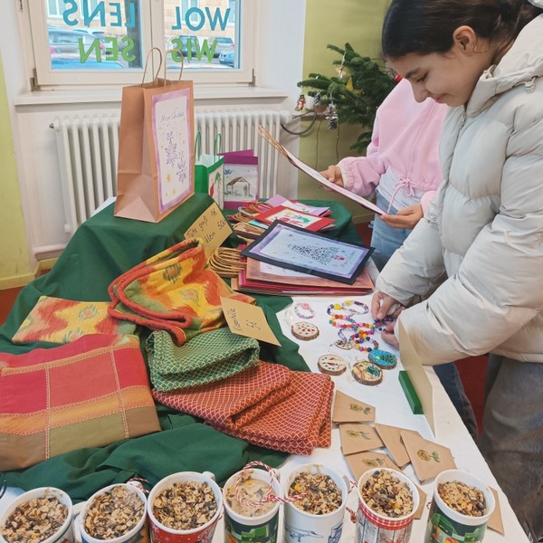 Wochenlang wurde gebastelt, gefaltet und gemalt! So entstanden zahllose kleine Kunstwerke, von Adventslicht bis Vogelfutter! Aber auch für das leibliche Wohl war gesorgt! Kinder der 4a rührten fleißig Teig und backten köstliche Waffeln. Zahllose Kuchen würden von fleißgen Eltern gespendet und zusammen mit Glühwein und Punsch vom Elternbeirat verkauft. Ein herzliches Dankeschön allen fleißigen Helferinnen und Helfern!
