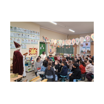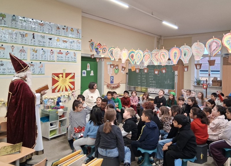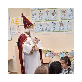 Am Montag kam der Nikolaus zu uns an die Friedrich-Rückert-Schule. Er erzählte den Kindern aus seinem Leben und über seinem Beruf als Bischof. Anschließend las er aus seinem dicken Buch vor, was den Kindern im vergangenen Jahr richtig gut gelungen ist und wo sie noch etwas verbessern können. Natürlich hatte er für jede Klasse auch einen großen Sack mit Mandarinen und Schokolade dabei!